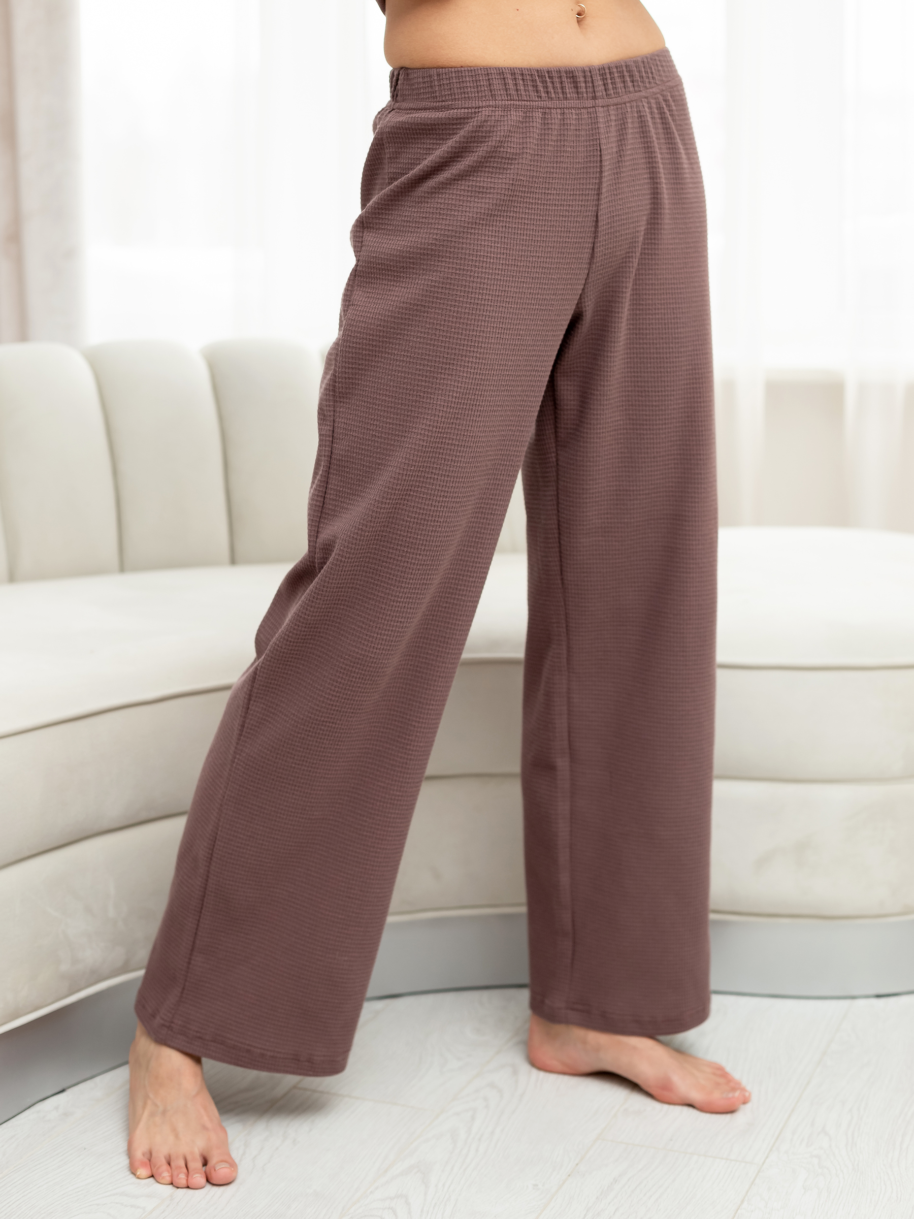 Стильные брюки домашние палаццо женские трикотажные на резинке свободного покроя оверсайз средней посадки без карманов.