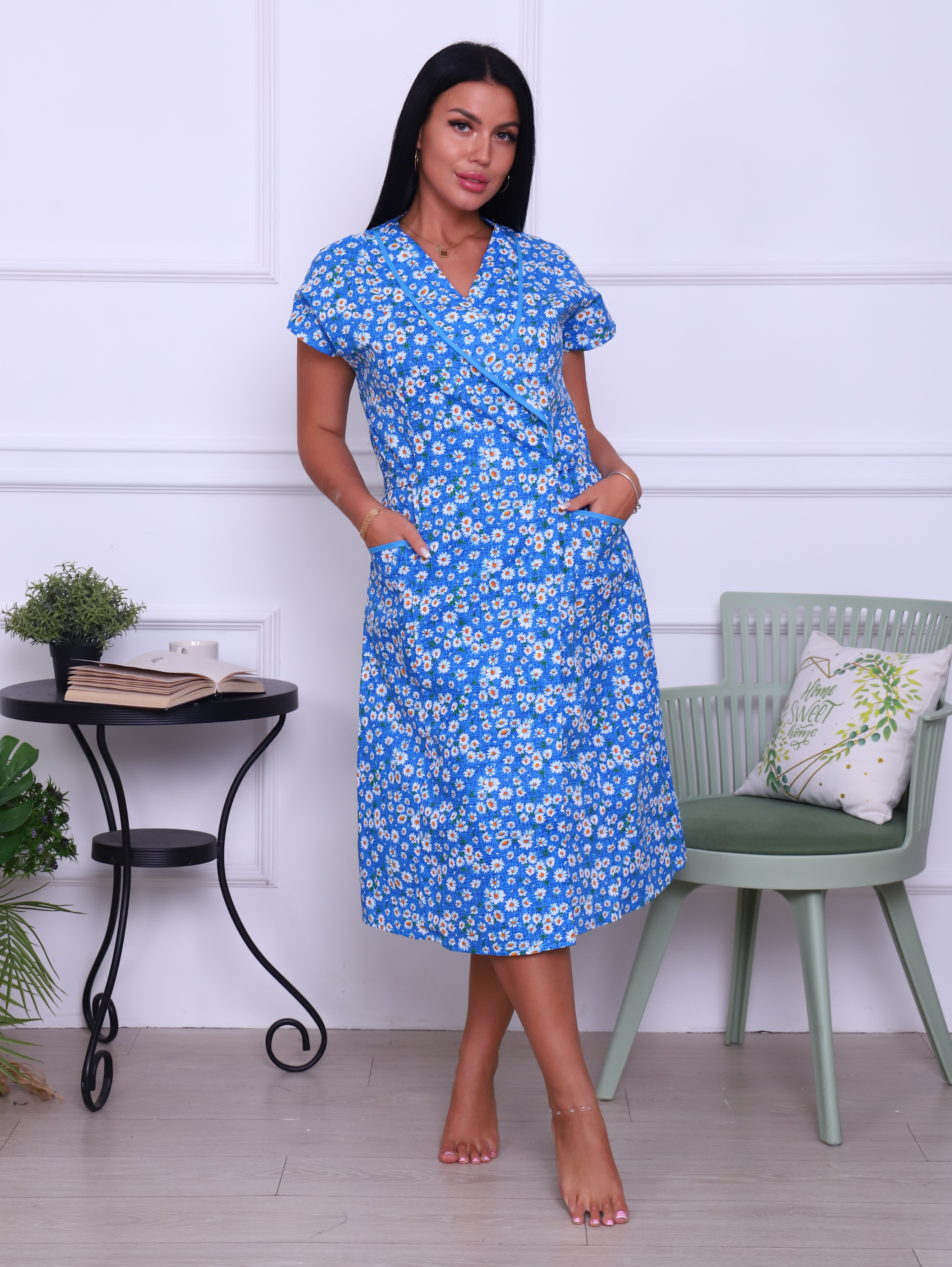 Халат домашний бязевый выполнен из натурального хлопчатобумажного материала из бязи - 100% хлопок.