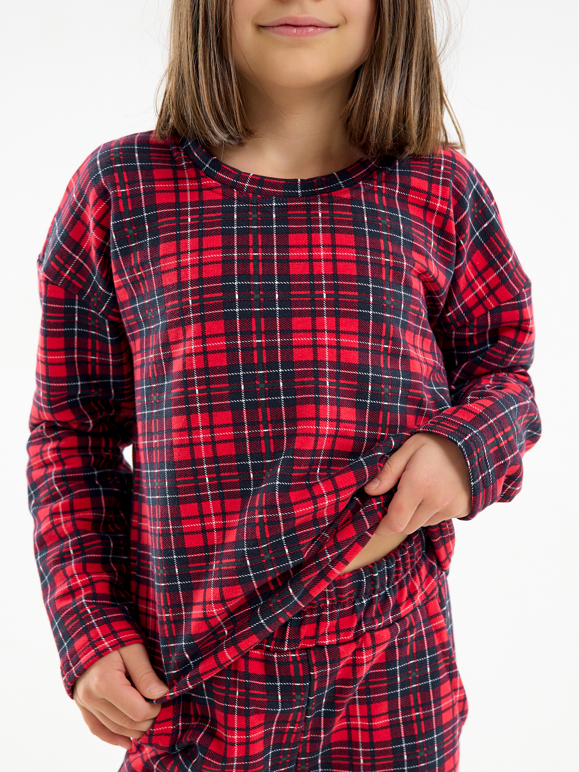 Милая яркая расцветка в трендовую красную клетку и продуманная посадка делают костюм универсальным для детей разных возрастов: малышей, подростков, девочек и мальчиков. Подходит для домашней одежды, садика, семейных праздников, новогодней ночи, а также для создания красивых семейных луков на фотосессии. Пижама не стесняет движений благодаря длинным рукавам и штанам, а кофта из футера с начесом дарит дополнительный комфорт даже самым маленьким.