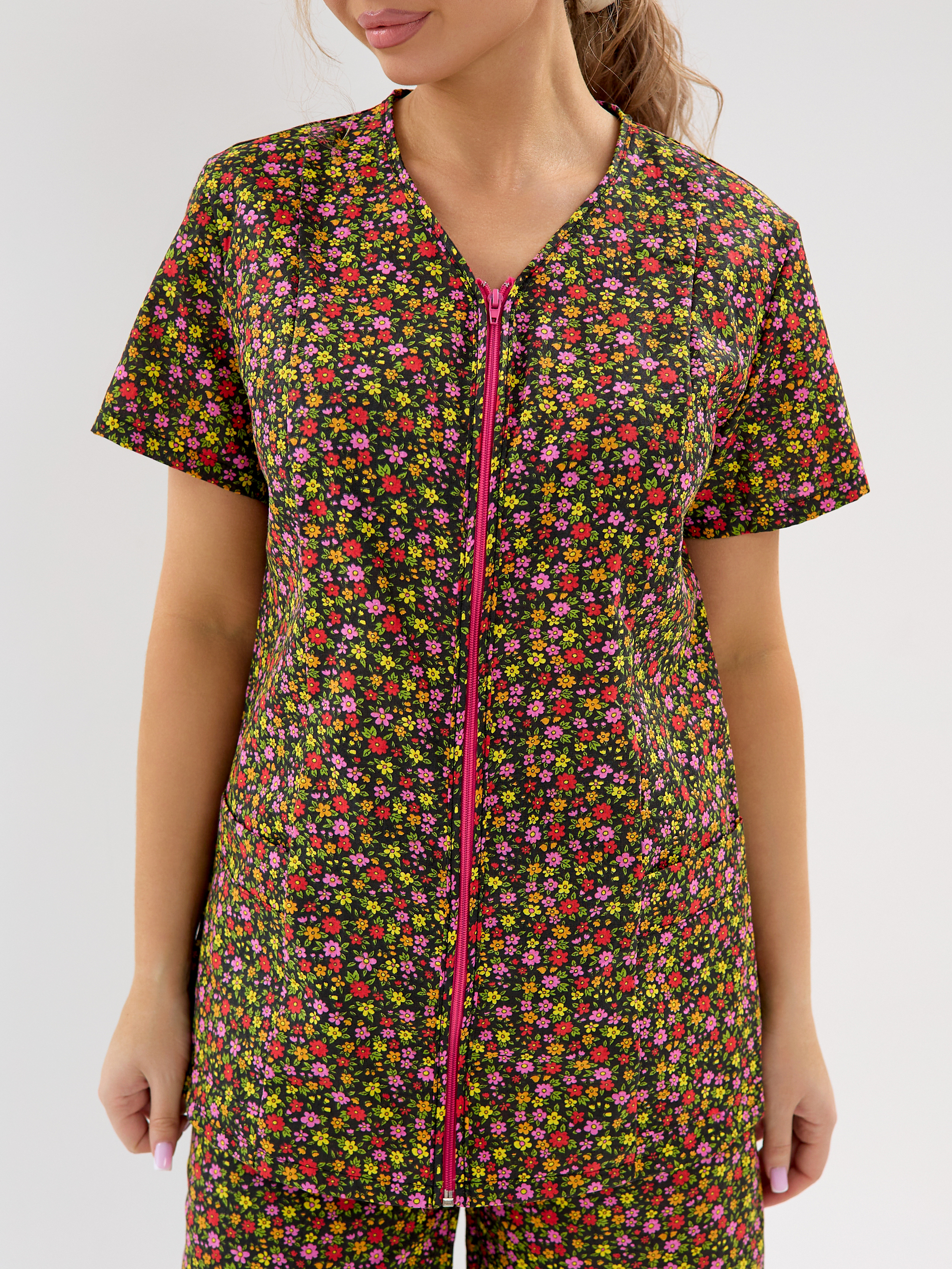 Женский дачный костюм из бязи, кофта на молнии с коротким втачным рукавом и карманами, шорты ниже колена на резинке. Натуральный 100% хлопок, дышащая ткань, тело будет дышать даже в самый жаркий день, свободный крой не будет сковывать движений. Яркий принт красные маки подчёркивает женственность. Идеален для дачи, огорода, дома, отдыха на природе, а также для путешествий и поездок на море. Шорты с комфортной посадкой поэтому будет удобно наклоняться и работать в огороде. Костюм домашний бязевый подходит для дел по дому, уборки и отдыха. В глубокие практичные карманы поместятся семена, перчатки, пара морковок «на перекус» и даже телефон с ключами, а также разные мелочи. Костюм женский летний прост в уходе, бязь устойчива к частым стиркам, хорошо держит форму.