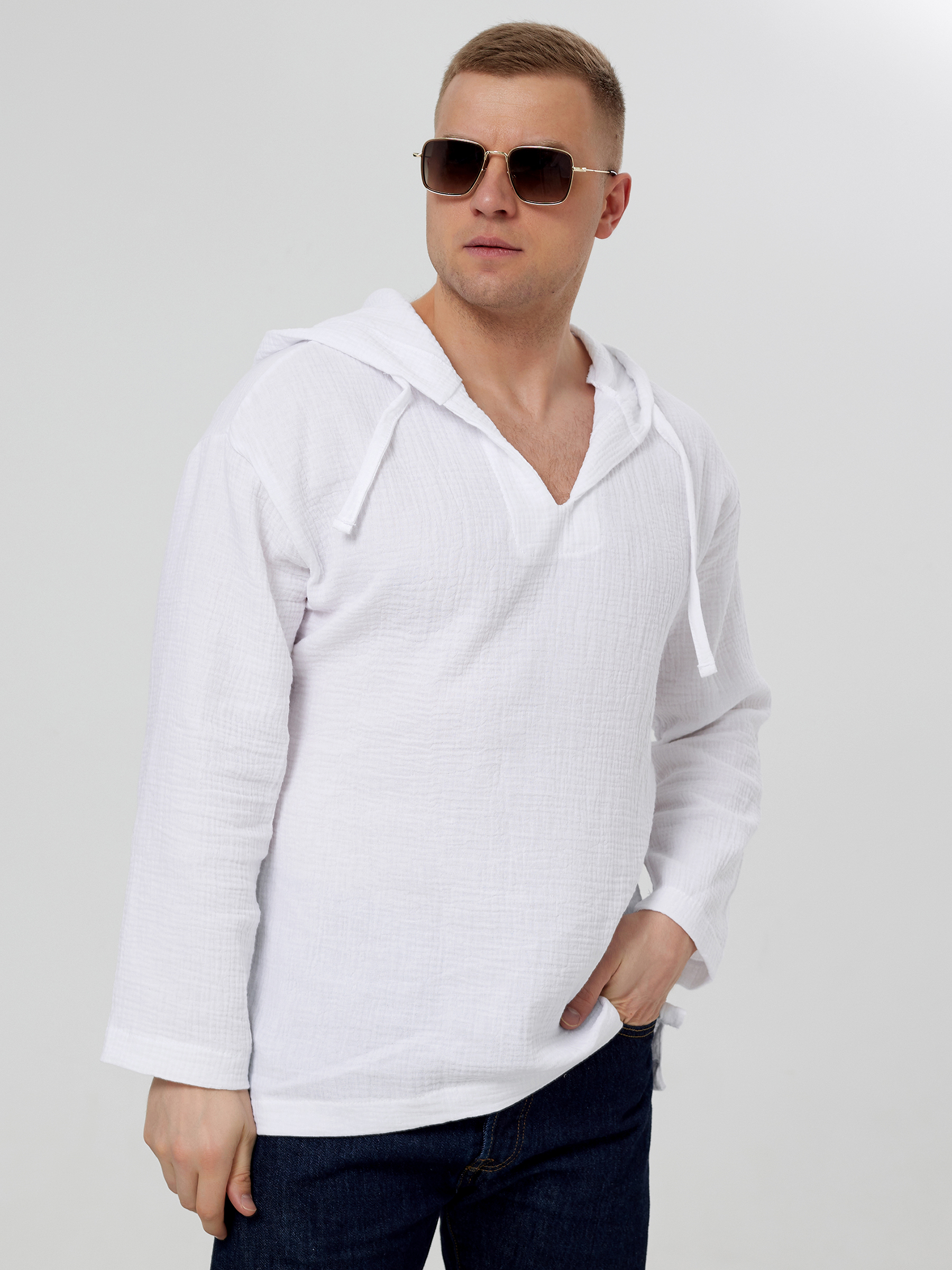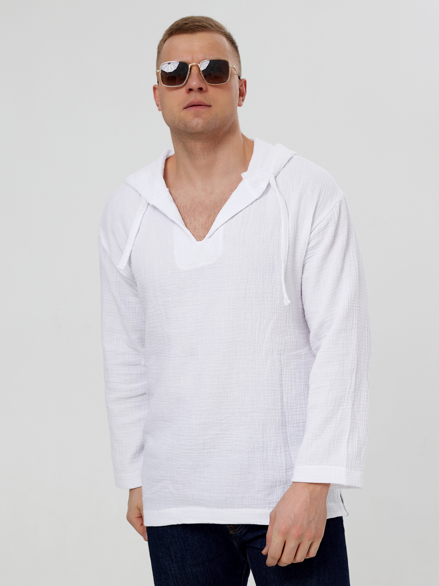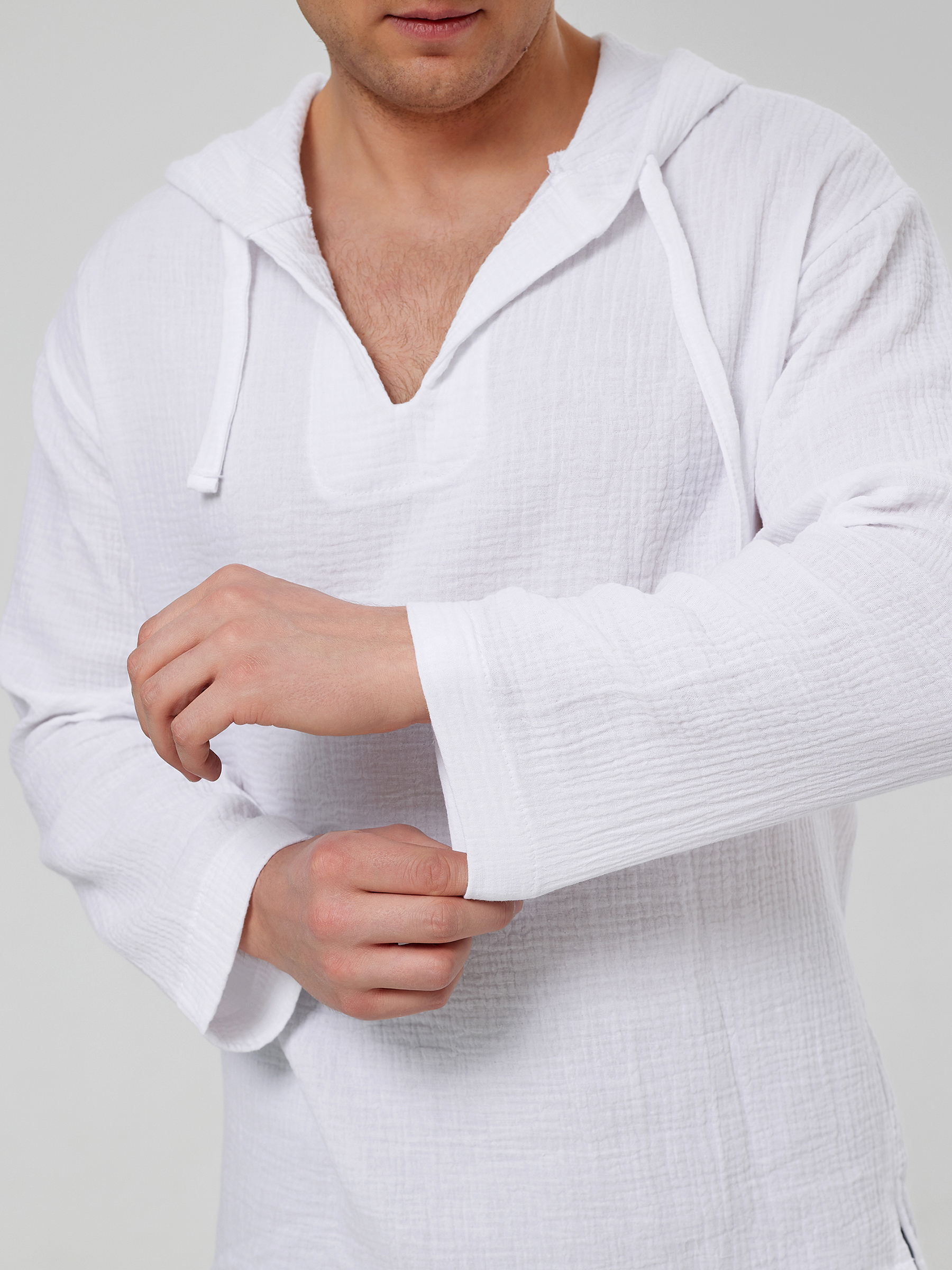 Её длинный рукав и капюшон добавляют функциональности и защиты в жаркие дни, делая эту мужскую одежду стильным и практичным решением для летнего гардероба.