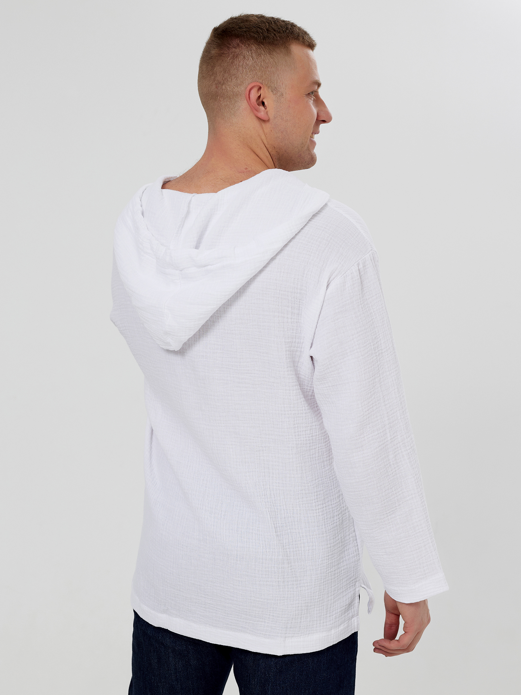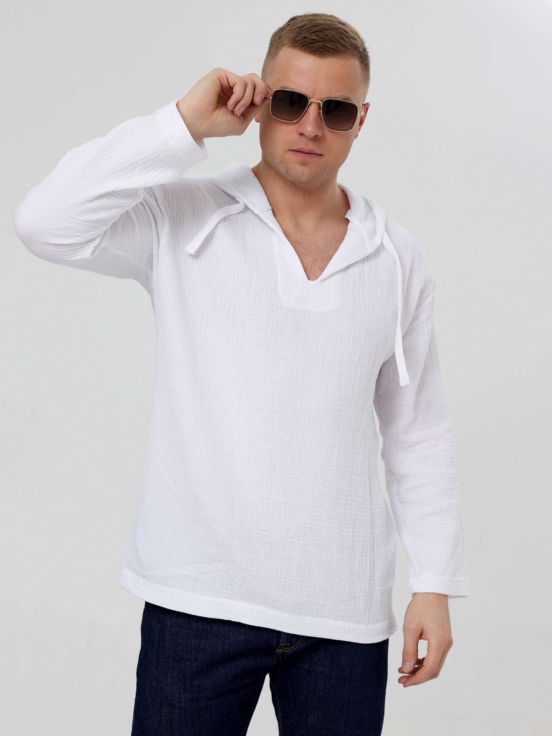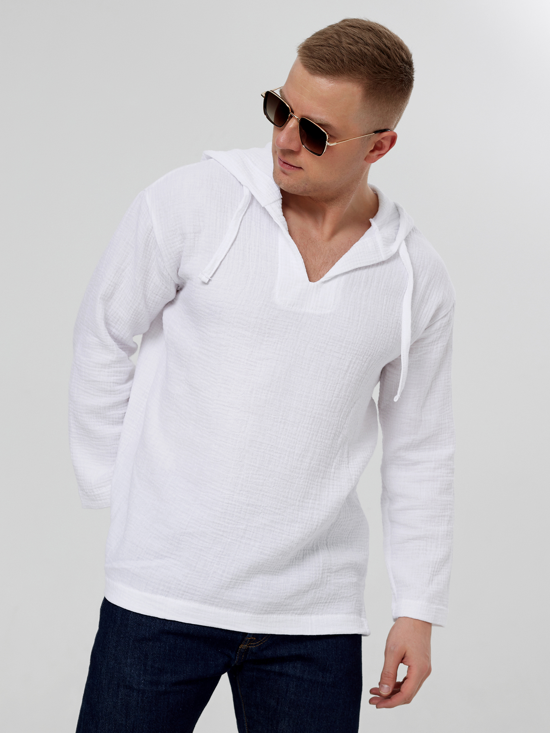 Её длинный рукав и капюшон добавляют функциональности и защиты в жаркие дни, делая эту мужскую одежду стильным и практичным решением для летнего гардероба.