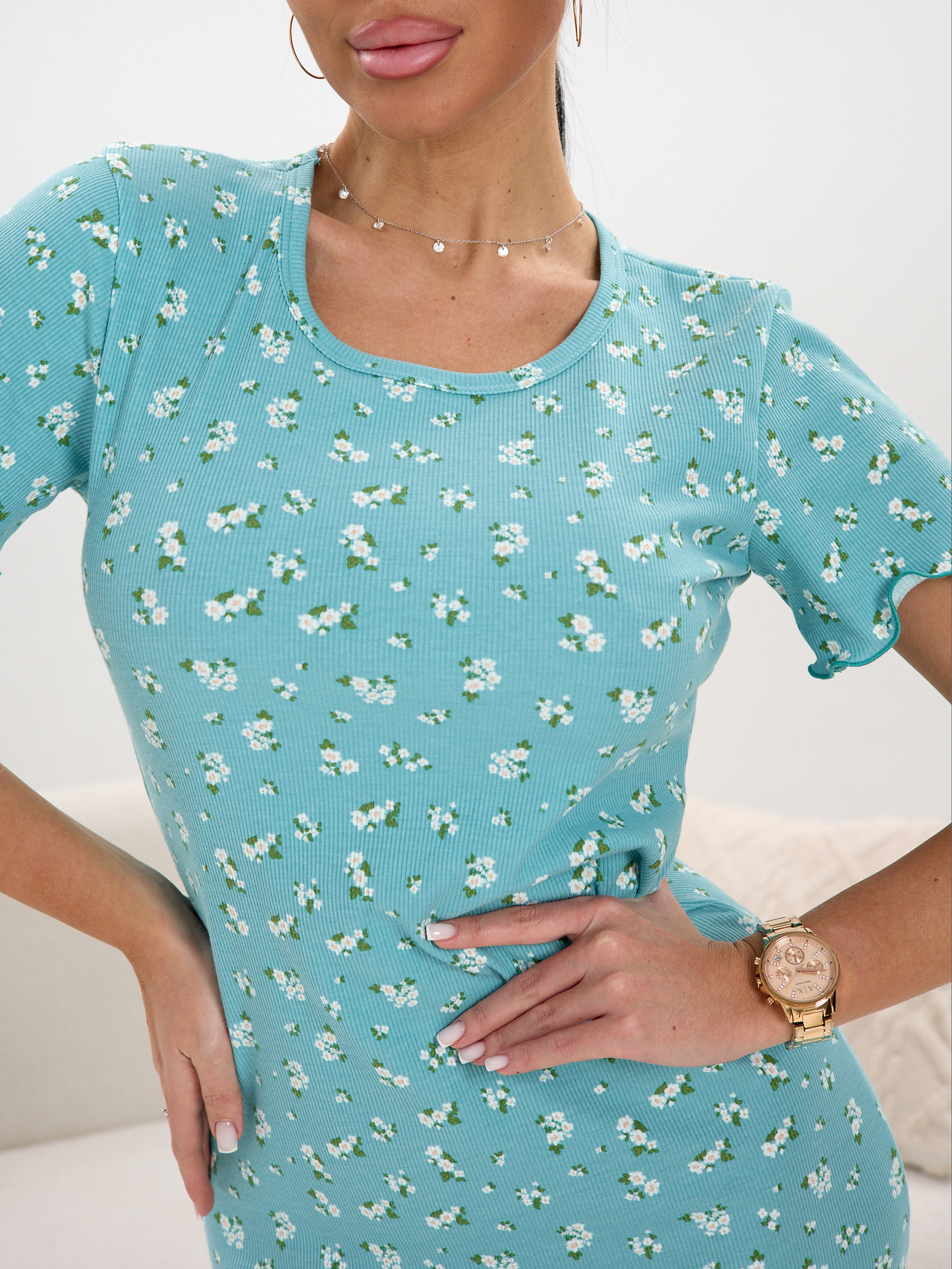 Ночная сорочка трикотажная с коротким рукавом в рубчик и   с разрезом.